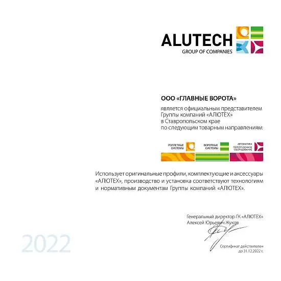 Компания «Главные ворота» основана в 2010 году, является официальным представителем ГК «АЛЮТЕХ». Уже более 12 лет наша компания предлагает свои услуги по монтажу всех видов ворот, роллет, автоматики, шлагбаумов, ограждений и перегрузочного оборудования.
