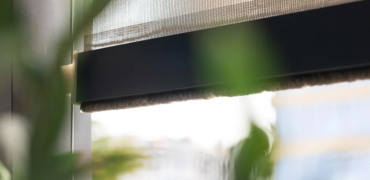 Полотно поднимается и опускается по направляющим, а специальный замок-молния фиксирует ткань. Это исключает появление боковых зазоров и защищает от проникновения насекомых или пыли.