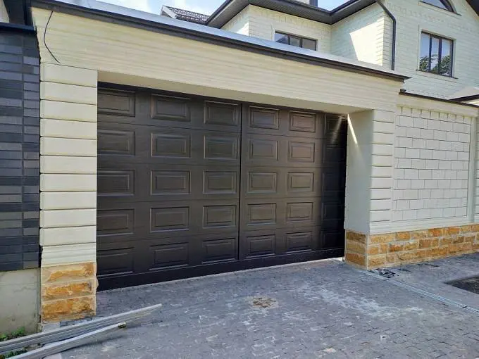 Неповторимый вид воротам придает комбинированное заполнение, которое позволяет сочетать между собой сэндвич-панели, алюминиевый и роллетный профили в различных вариациях.